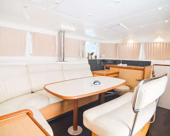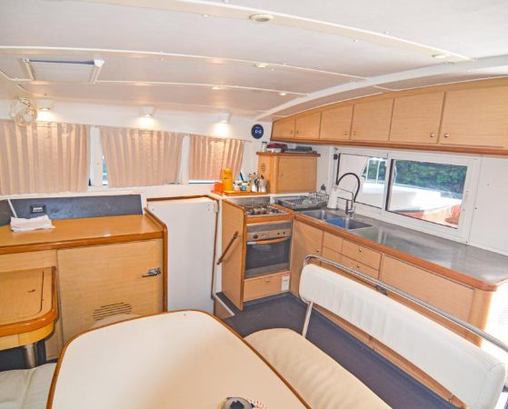 Renting a Lagoon 440 is like making a great discovery. This catamaran has a truly original harmony, with the sail and engine controls completely stowed away on the upper deck. Visibility is very good and the sensations, well, better to experience them! The interior is again a surprise, as this catamaran is equipped with a luxury finish; the cabins are true suites with their small living room, a double bed and a flat-screen TV; the kitchen is fully equipped and the bathrooms are splendid. Renting a Lagoon 440 is ideal for those who want to want for nothing during their cruises!
