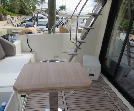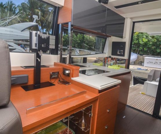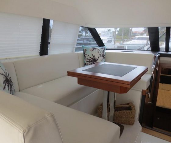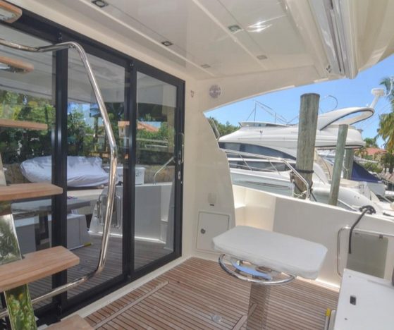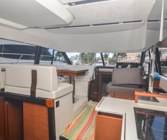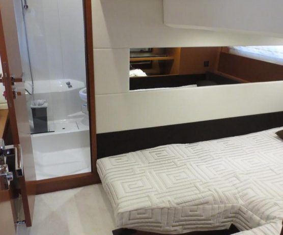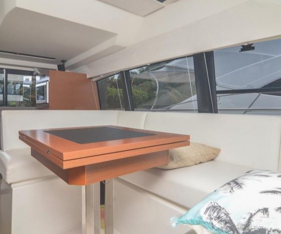 On the interior, the PRESTIGE 42 reveals her ingenuity and refinement. High-end finishes and materials create a harmonious and inviting atmosphere.